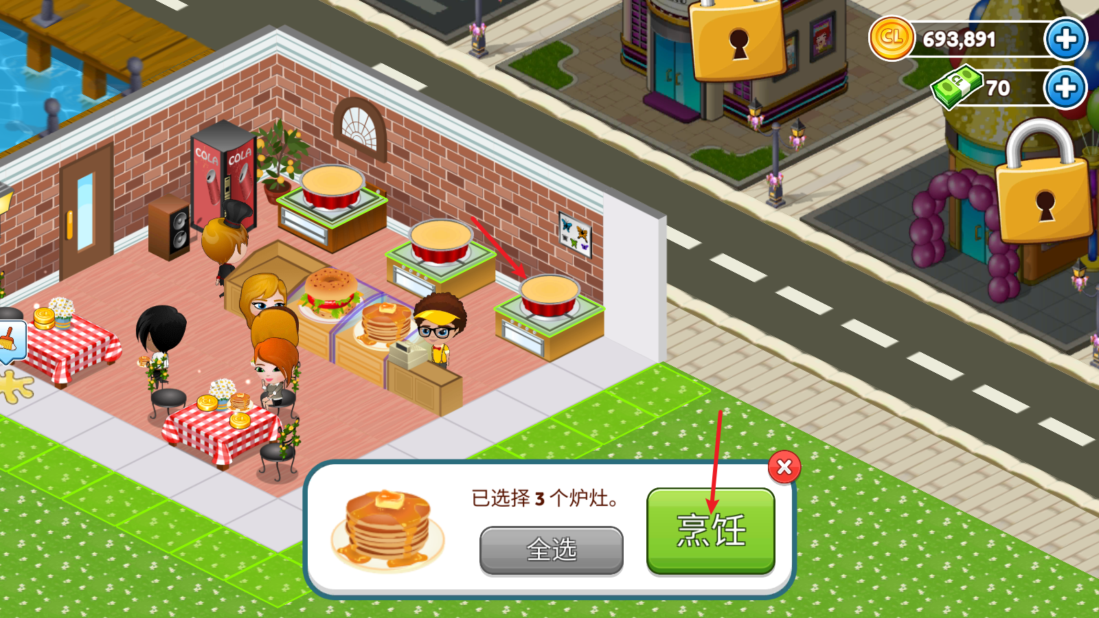 1、进入游戏后我们点击灶台,之后就能够选择美食进行制作了。