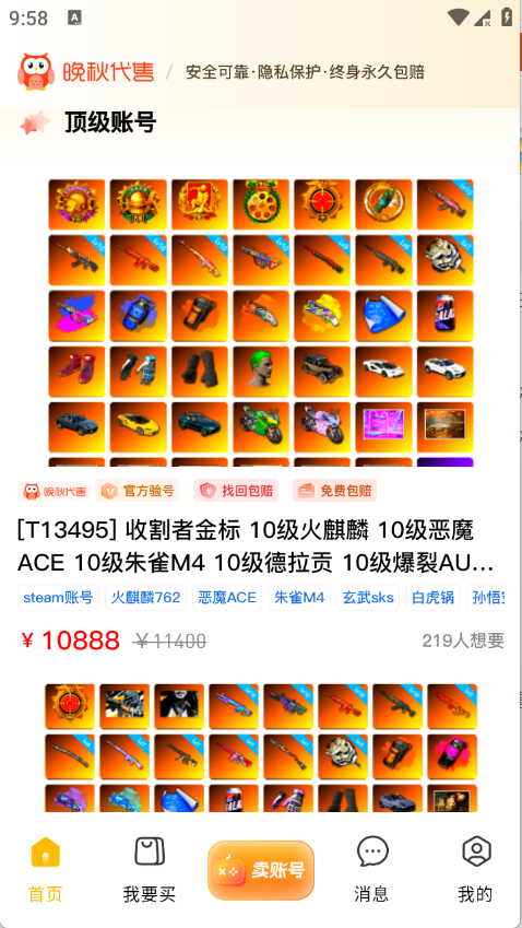 智能筛选与搜索系统:买家可根据游戏名称、账号类型、价格区间、皮肤/装备情况等条件进行精准筛选,快速定位目标账号。提供中介担保交易模式,保障买卖双方资金与账号安全。支持多种便捷支付方式,交易流程清晰,追求“秒速到账”。