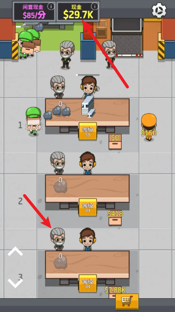 深度策略升级系统:花费金币升级每个工作站的效率、容量和速度。投资市场部、研发部等,提升产品售价、解锁新商品或生产加成。