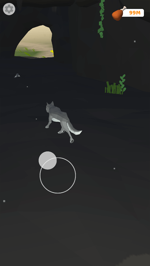 2、进入游戏后,玩家将操控一只狼开始冒险,通过滑动轮盘来操控移动方向;