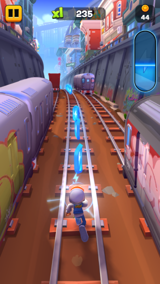 -收集并升级跑酷者和滑板:每个地铁跑酷者和滑板都拥有独特的技能,升级并组合跑酷者和滑板,打造属于你的专属玩法!通过游玩和开启神秘宝箱收集所有角色,并升级他们的能力。