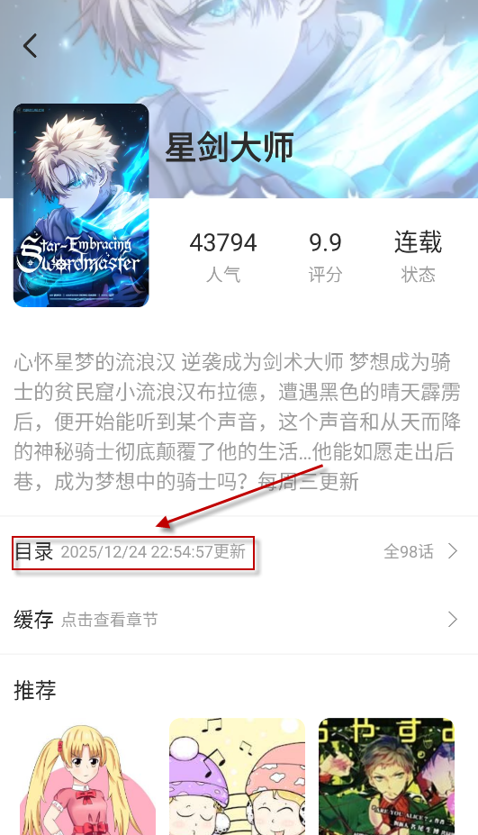 1、下载安装并打开软件,在首页中有众多漫画推荐。