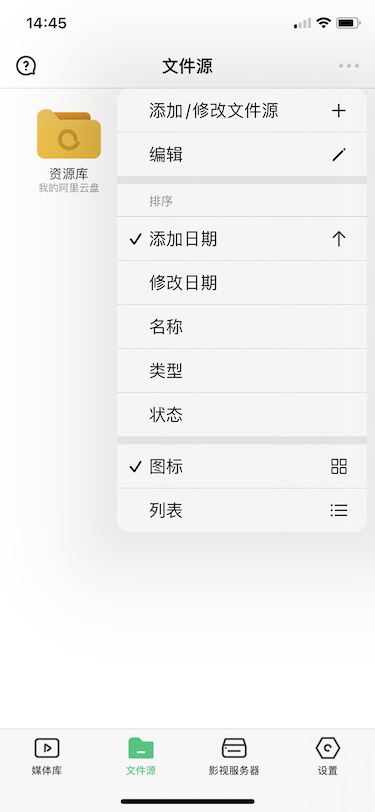 文件源:可以理解为一个仓库,是一个管理影片资源的地方,支持添加,删除,禁用,重命名,以及重新扫描文件