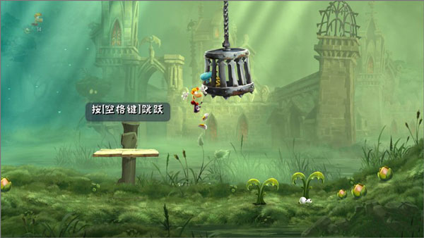 3、来回摆动绳子并在最高点跳出攻击牢笼可以解救精灵。