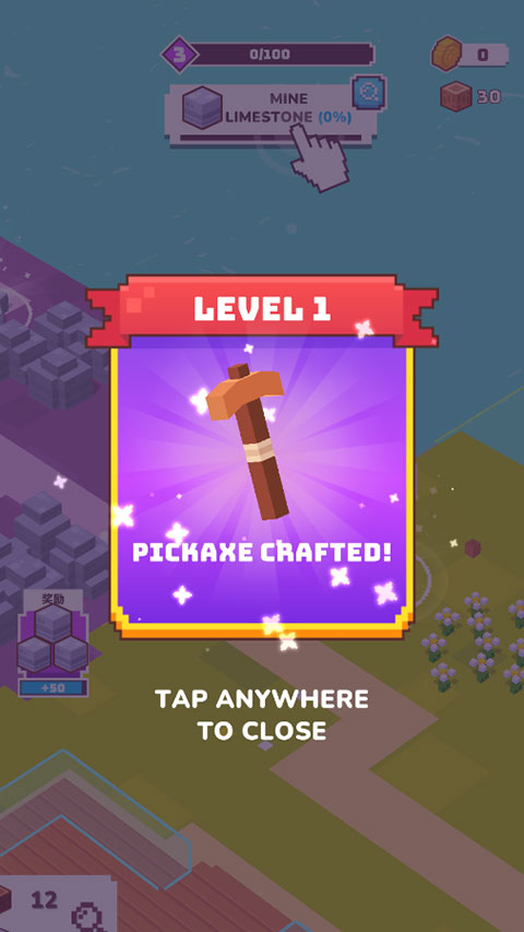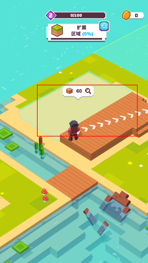 4、完成一个小目标,会奖励区域扩展,我们需要去砍伐更多的树木来建造;