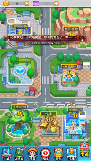 小镇中的神奇交换、宠物屋等功能,需达到对应训练家等级解锁,前期专注主线升级,解锁后可体验更多养成与交互玩法。