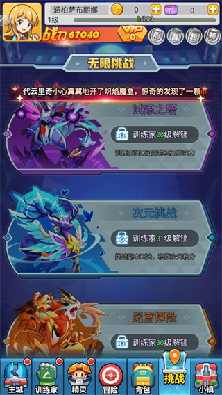 跟随训练家等级提升,逐步解锁无限挑战中的试炼之塔、次元挑战、迷宫探险,这些玩法是后期稀有材料的主要来源。