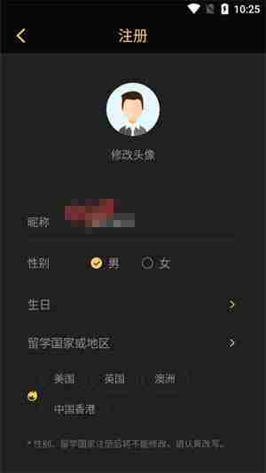在注册界面完善你的个人信息,点击完成注册。