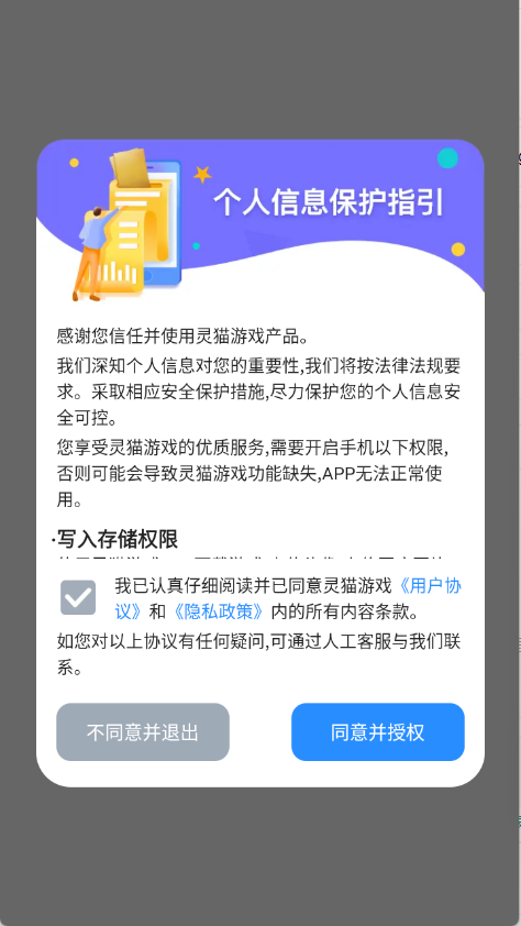 1、用户在东坡下载站下载灵猫游戏app,点击同意。