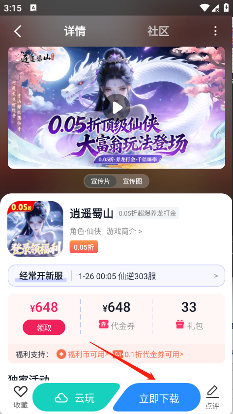5、点开想玩的游戏资源进入详情页,点击立即下载。
