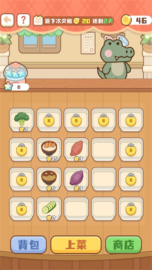 4、点击商店可以消耗金币购买新的食材,商店里的货物只有全部购买完毕后才会刷新。