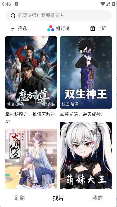 3、找片页面将漫剧进行了详细的归类。