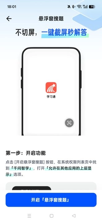 首页使用界面下方的第一个功能便是悬浮窗拍照搜题,现在我们点击该功能以继续后续的操作流程。