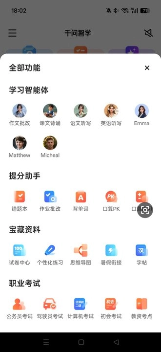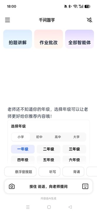 1、AI虚拟老师互动:支持语音/文字多轮对话,覆盖古诗文背诵、数学解析、英语纠音等全学科场景,提供启发式讲解。