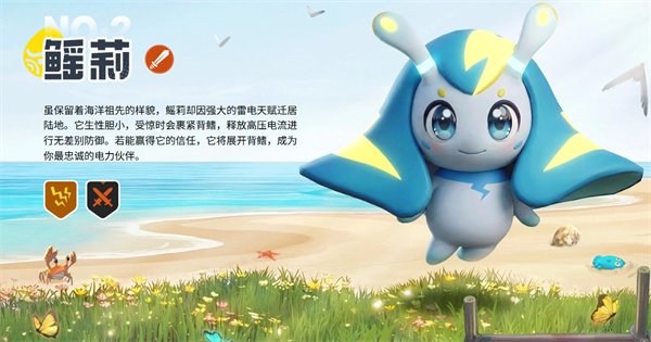 虽保留着海洋祖先的样貌,鳐莉却因强大的雷电天赋迁居陆地。