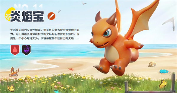 生活在火山的火属性帕萌,拥有将火焰当做当做食物的能力,吃下得越多身体能积攒的火焰势能也就更加强烈。