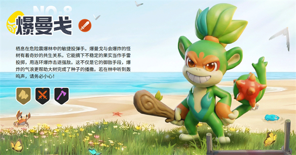 栖息在危险震爆林中的敏捷投弹手。爆曼戈与会爆炸的怪树有着奇妙的共生关系。