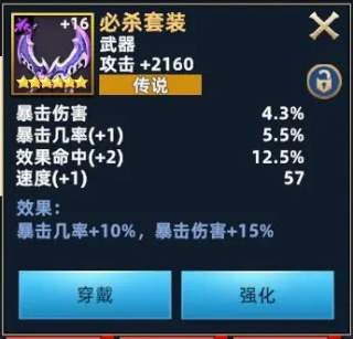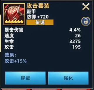 穿2件攻击装,激活套装效果攻击+15%;