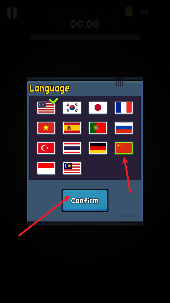 2、进入laanguage语言设置,选择中国国旗,把语言设置成汉语,这样方便玩。