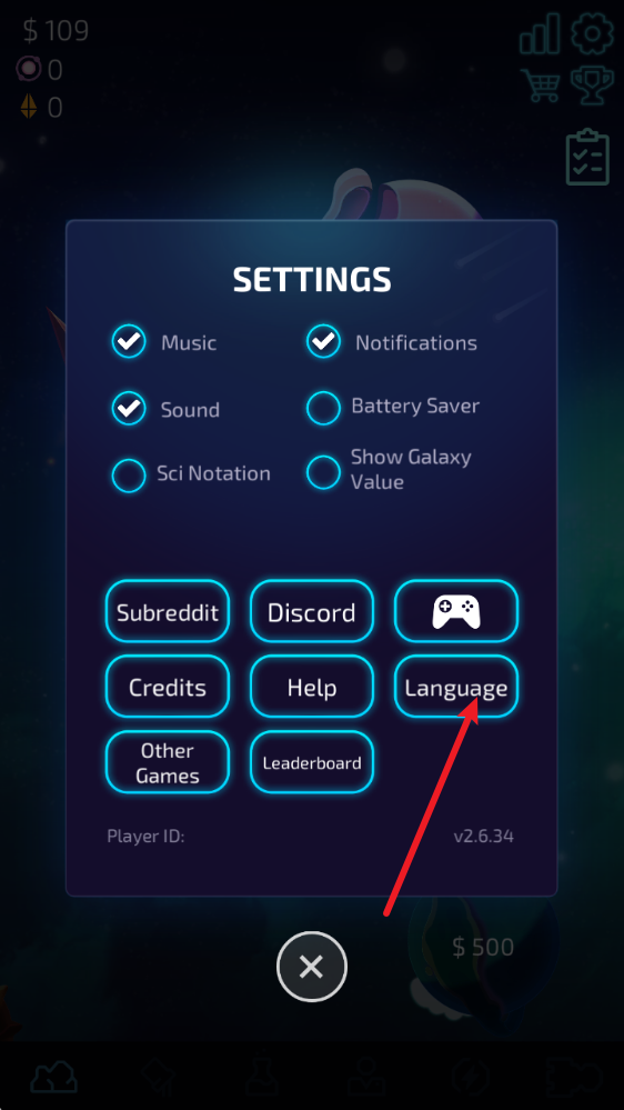 宇宙主题与视觉放松:星空背景与简约的星球、飞船设计,营造舒缓的放置氛围。