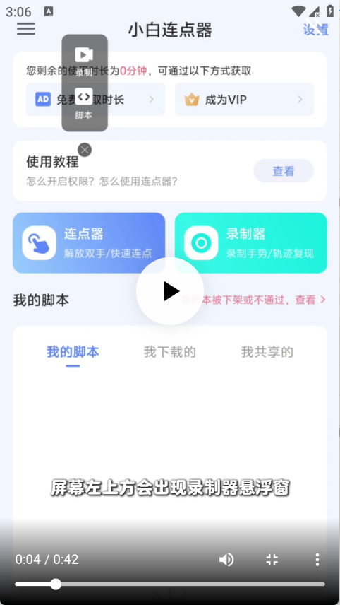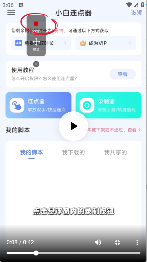 2、点击之后,屏幕左上方会出现录制器悬浮窗