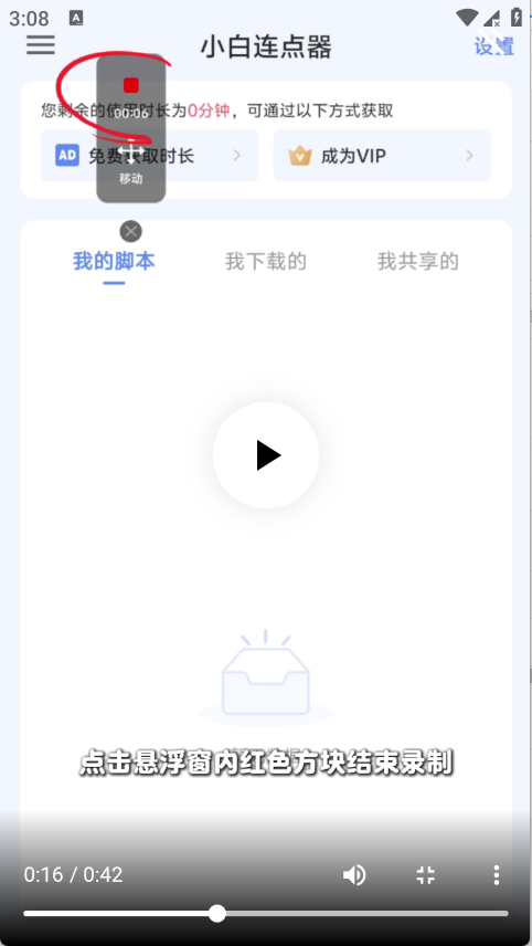 6、录制完毕后,点击悬浮窗内红色方块结束录制。