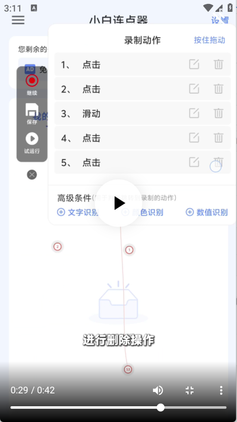 9、操作有错误的情况下,也可以在录制动作内,找到不满意的操作,进行删除操作,