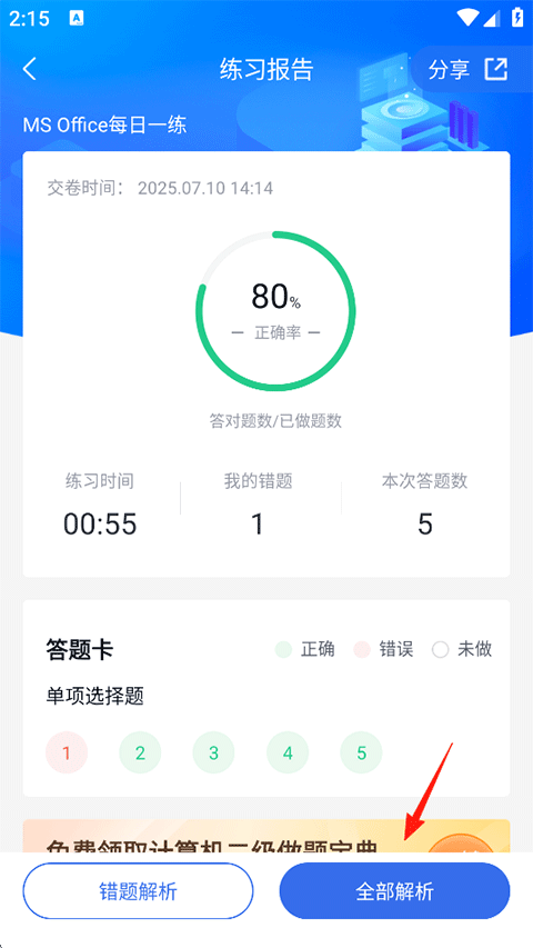 做题完成后,系统收集记录错题,方便重做温习,消灭错题!