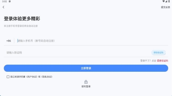 2.在登录界面输入手机号与验证码后,点击“立即登录”按钮进入程序