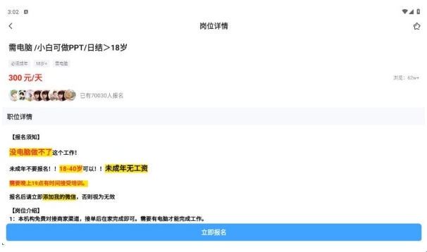 点击查看职位详情,了解工作安排和收益等信息,合适在线报名。
