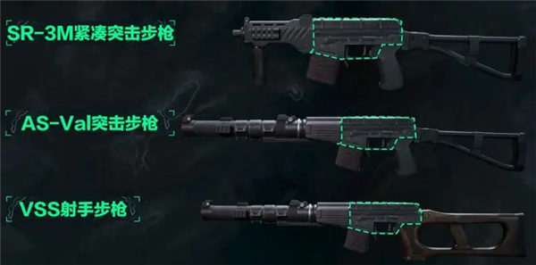9x39mm弹药适用的武器一共有三把,分别是VSS射手步枪、SR-3M紧凑突击步枪和AS-Val突击步枪。有趣的是,三者的枪机结构和原理一致,主要不同点在于射速和射程区别。