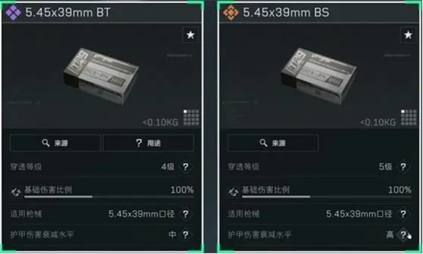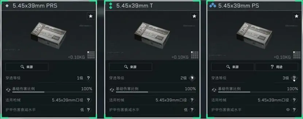 5.45x39mm弹药的基础伤害比例均为100%。但不同的是,越高等级的弹药其护甲穿透能力也越高。