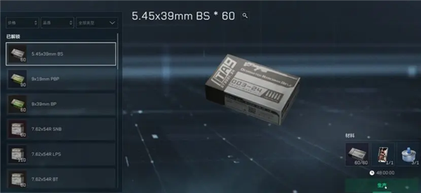 行动等级达到10级后,不仅可在战术部门,兑换5.45x39mm PS,还可以在特勤处工作台制作5.45x39mm BT。特勤处工作台升级到3级后,可以在工作台直接生产最高级的5.45x39mm BS弹药。