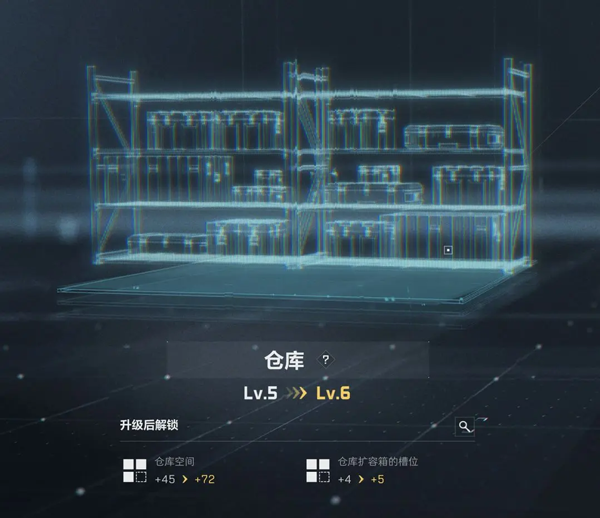 仓库则是干员们存放物资的地方,升级后可以提高仓库容量和扩容箱槽位,方便干员们储备更多物资。