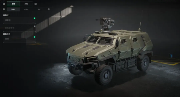 装备位2默认装载维修功能,当载具损伤以后可以第一时间进行维修。部分载具可以将维修功能改装为主动防御部件,在战斗中激活后可以有效抵御来袭的炮弹。