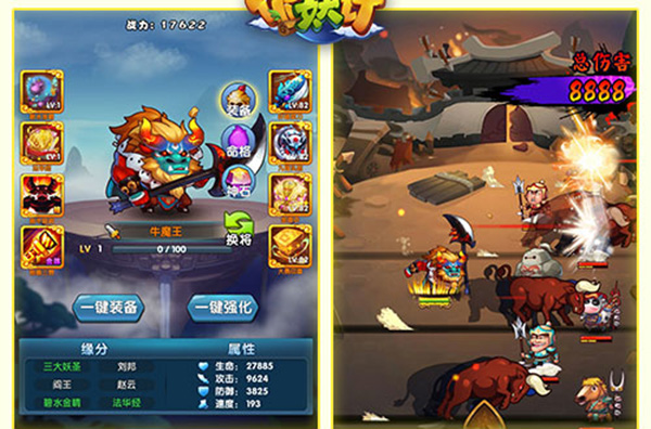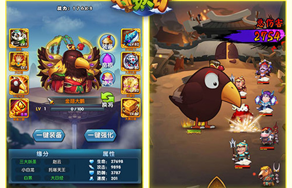 卡牌收集与养成:收集上百位被“妖化”的古今名将/妖怪。每个角色拥有独特的技能(通常也充满恶搞元素),并通过升级、升星、装备、觉醒等方式进行深度养成。