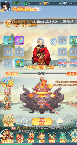 围绕玩家角色,构建了一套完整的“修仙”养成线:境界突破、法宝炼化、坐骑培养、羽翼进阶、功法修炼等。这些系统提供直观且巨量的战力提升,满足玩家对“数值成长”的追求。
