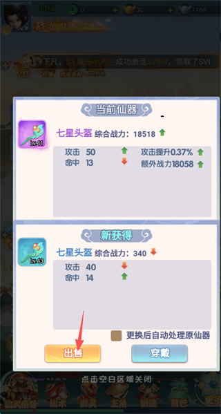 4、当炼炉出现更好的装备,会直接与现装备进行全面对比,玩家可以自行选择是否穿戴或者出售。