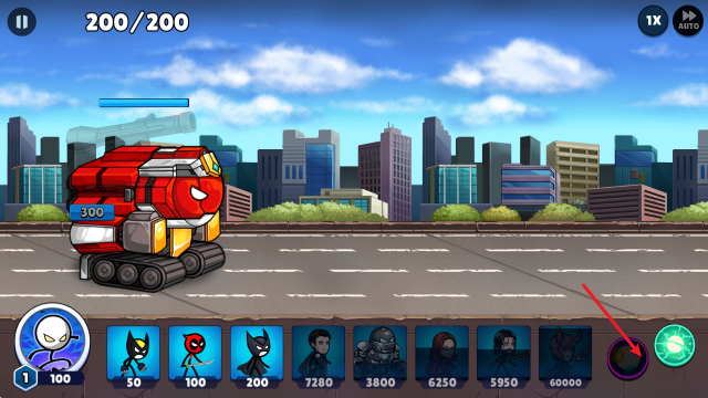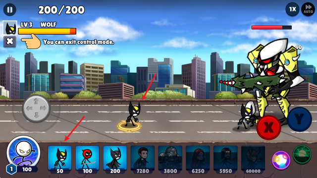 1、游戏中点击下方的火柴人英雄即可召唤,选中还可以操控它去战斗。