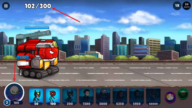 英雄召唤与即时操控:点击屏幕召唤火柴人英雄,并可选中单个英雄进行走位、集火等微操,兼顾策略部署与动作干预。