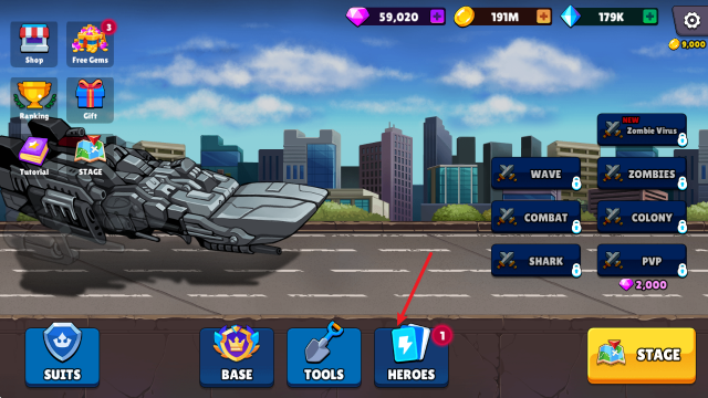 1、主界面中点击下方的HEROES。