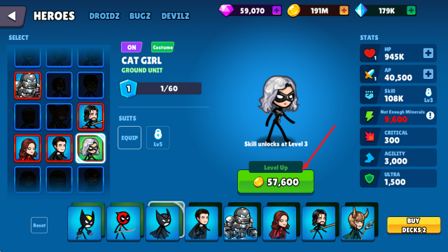 2、在这里可以购买解锁喜欢的英雄,并升级提升能力。