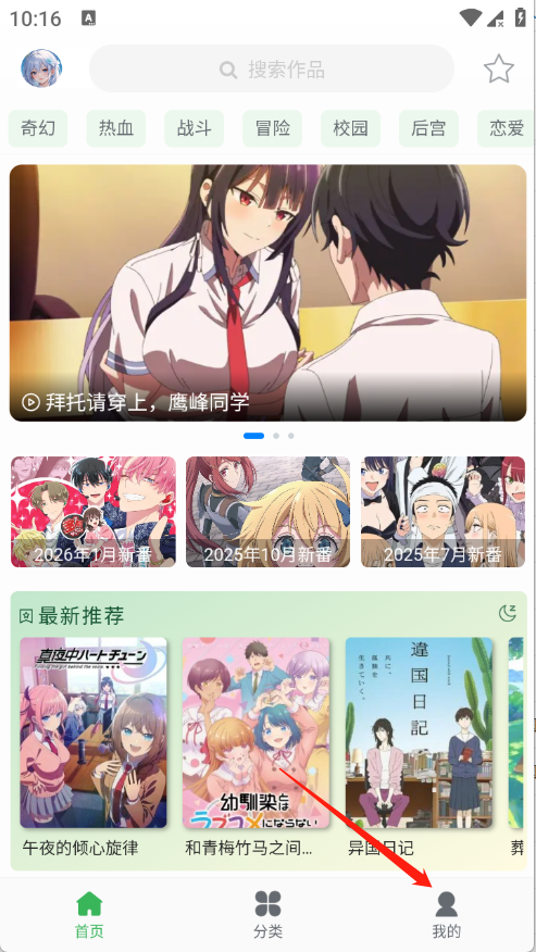 2、进入到首页首页为用户推荐了很多热门的动漫。