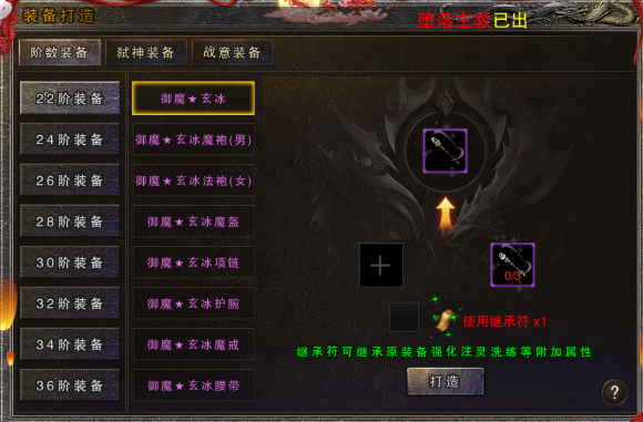 [装备打造]本服高阶装备可打BOSS爆出全看运气。也可通过收集低阶装备打造出高级装备,可打造最终弑神系列装备。