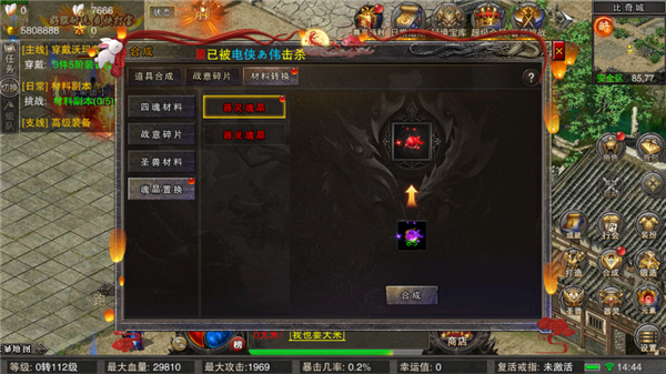 2、在这里就可以将能够合成的两个魂品进行合成,点击“合成”按钮。