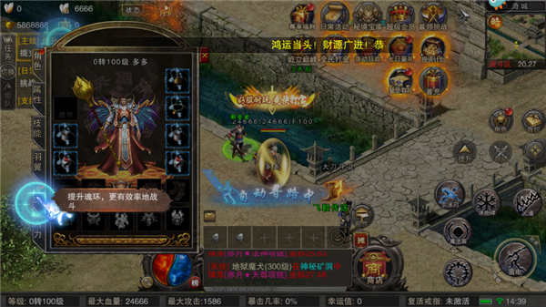 [四魂系统] 四魂系统可提升大量的生命、防御、攻击、暴击属性,打宝地图十二星宫、日常活动均有产出。