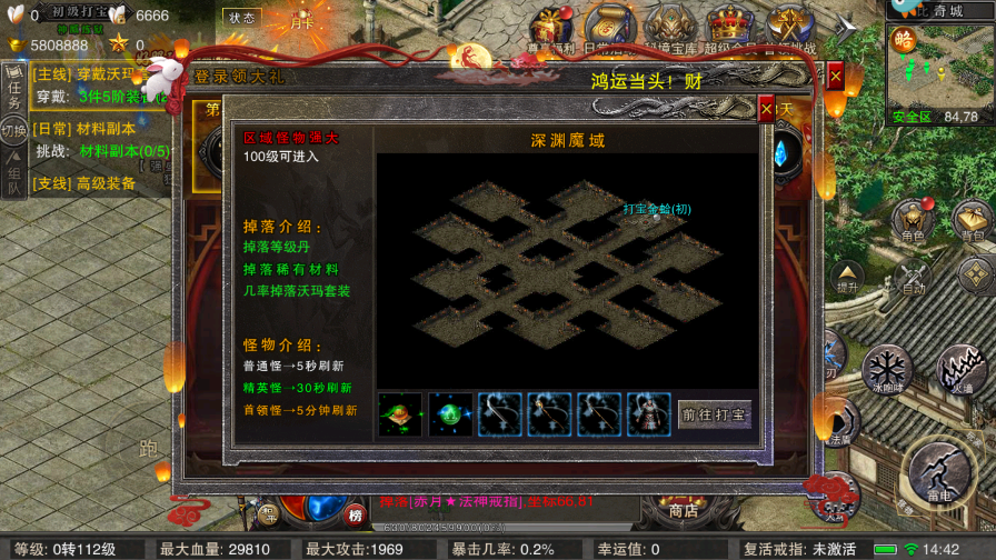 [打宝地图]只要等级达到无任何限制,打宝地图挂机刷怪可刷大量材料,是打料打装备的不二圣地。