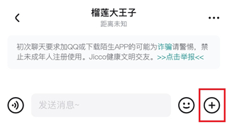 1、在聊天界面点击右下角的【+】号。