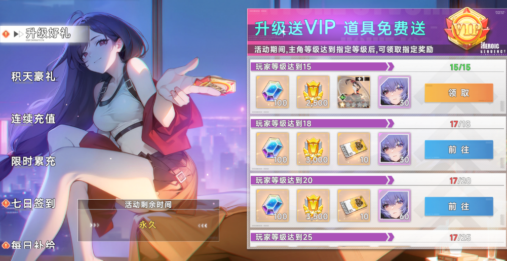 无需苦熬!升级即送【永久满级VIP特权】及五星时崎狂三专属圣器