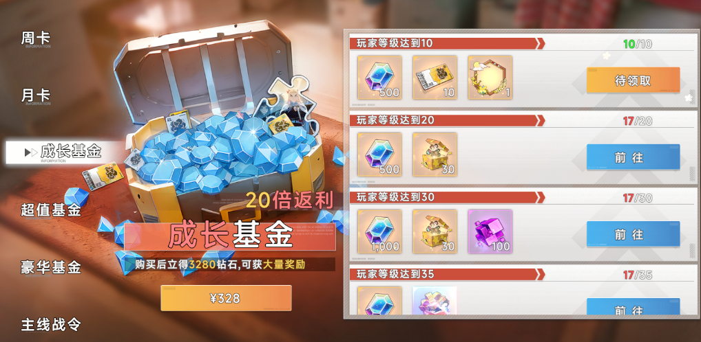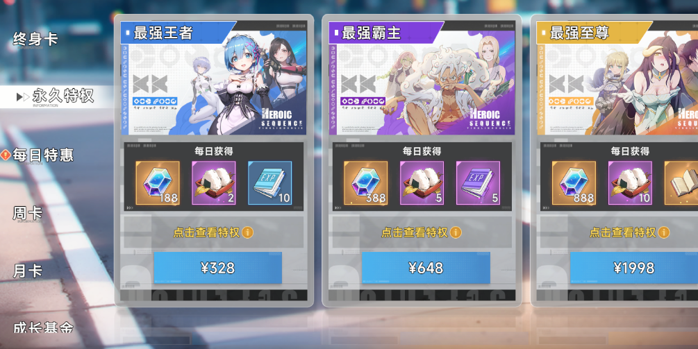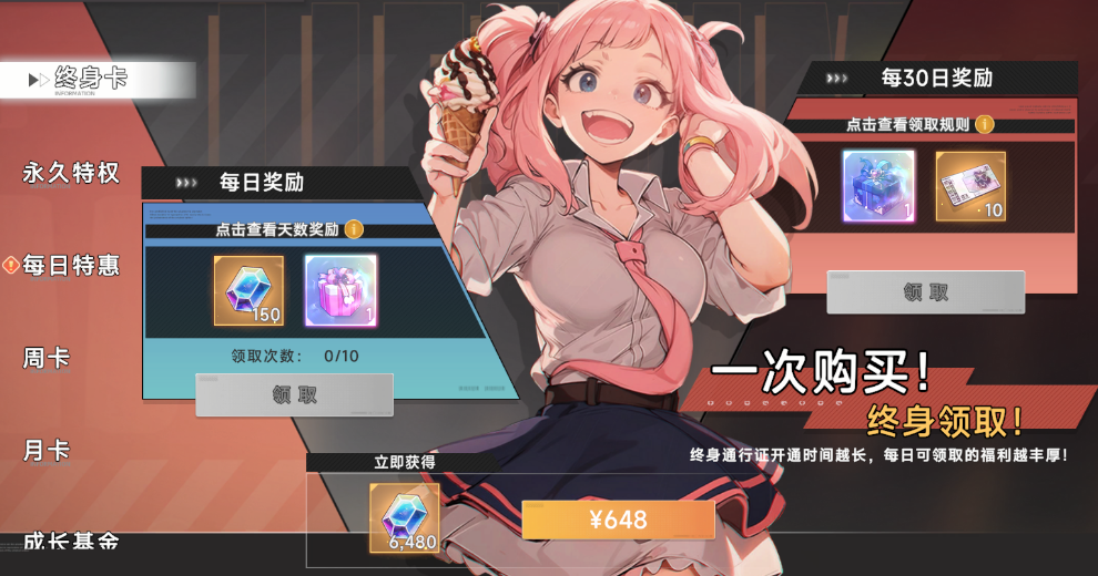 2、超值月卡终身卡微氪党必备,钻石领领领